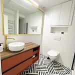- ❓Quels équipements de salle de bains peut-on s'attendre à trouver dans l'appartement ?L'appartement propose une salle de bains complète avec un sèche-cheveux et des draps de bain.
